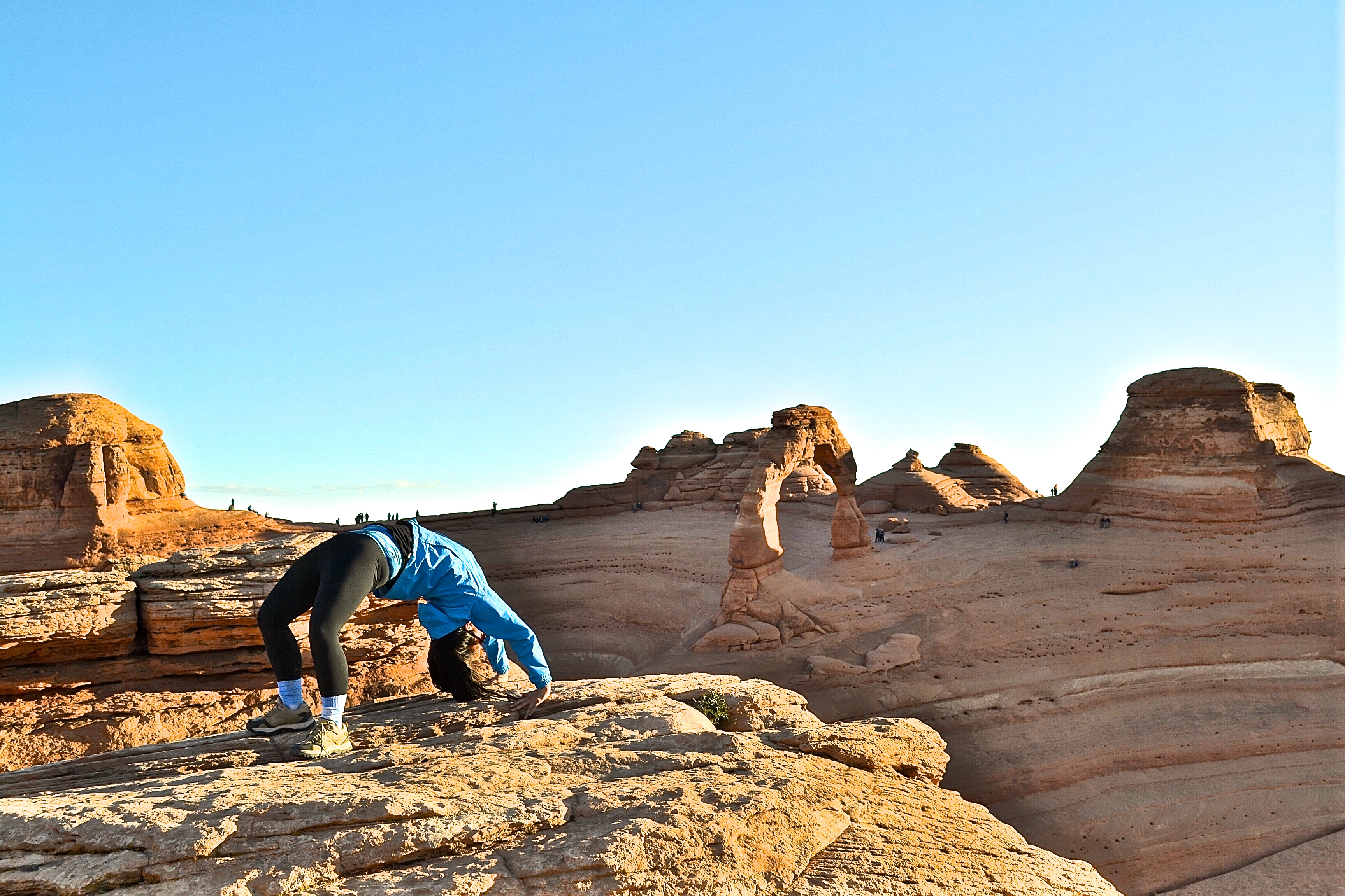 Wheel pose at Arches National Park, Utah.