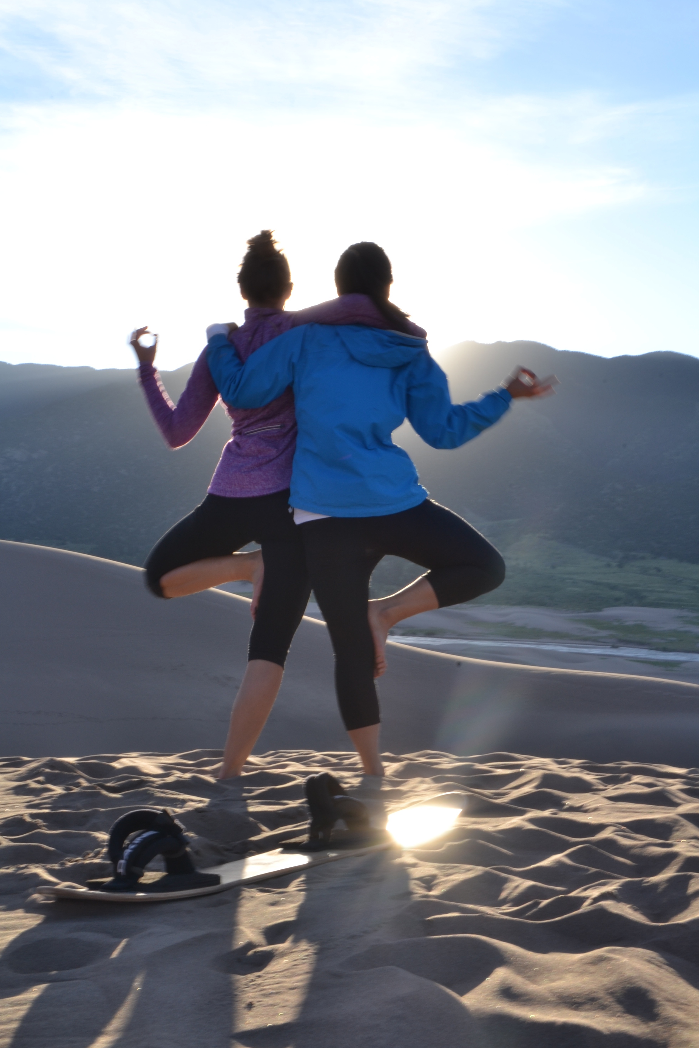 Friend tree pose at Sand Dunes National Park, Colorado.