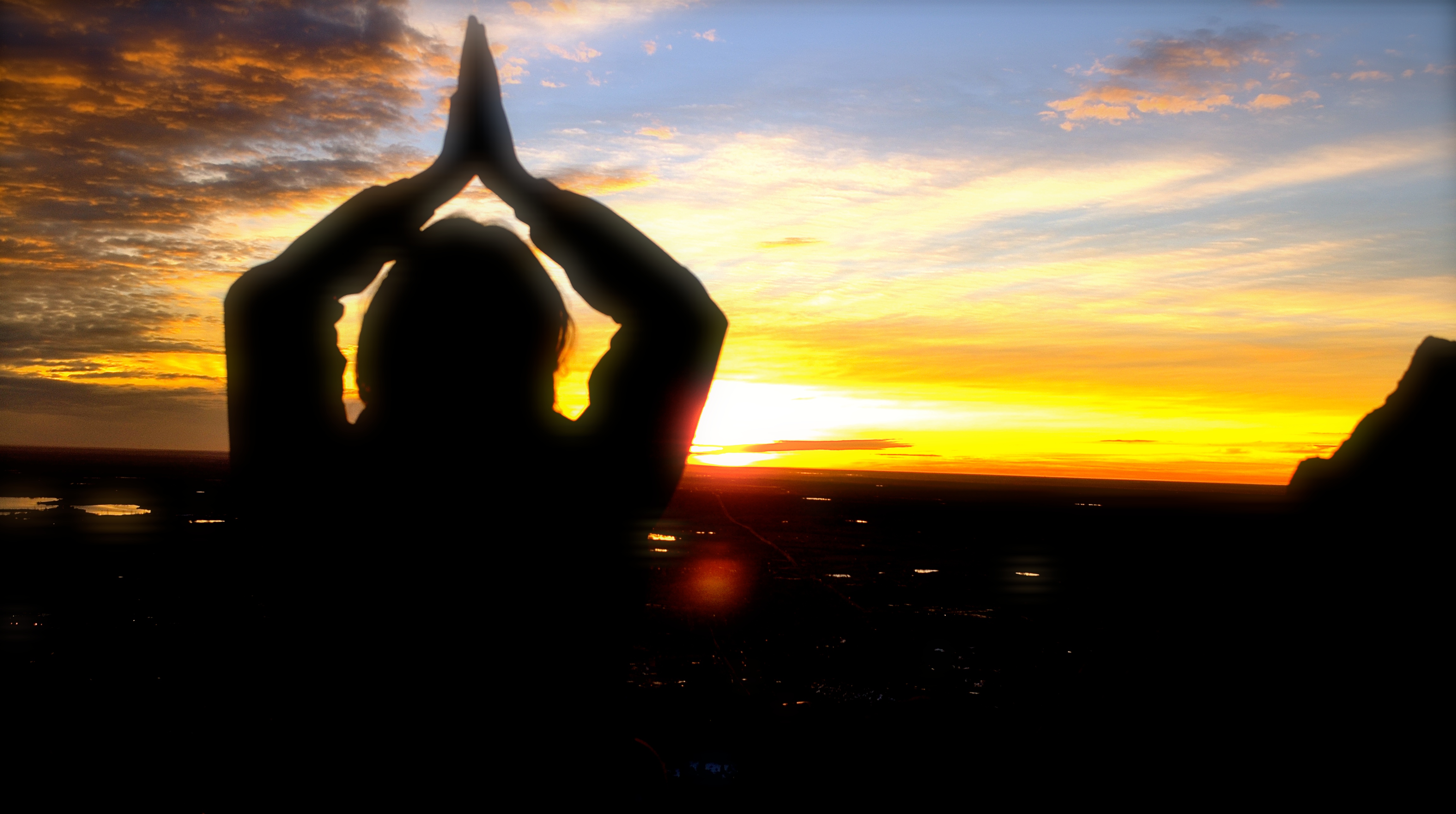 Tree pose for sunrise on top of the flat irons in Boulder, Colorado.