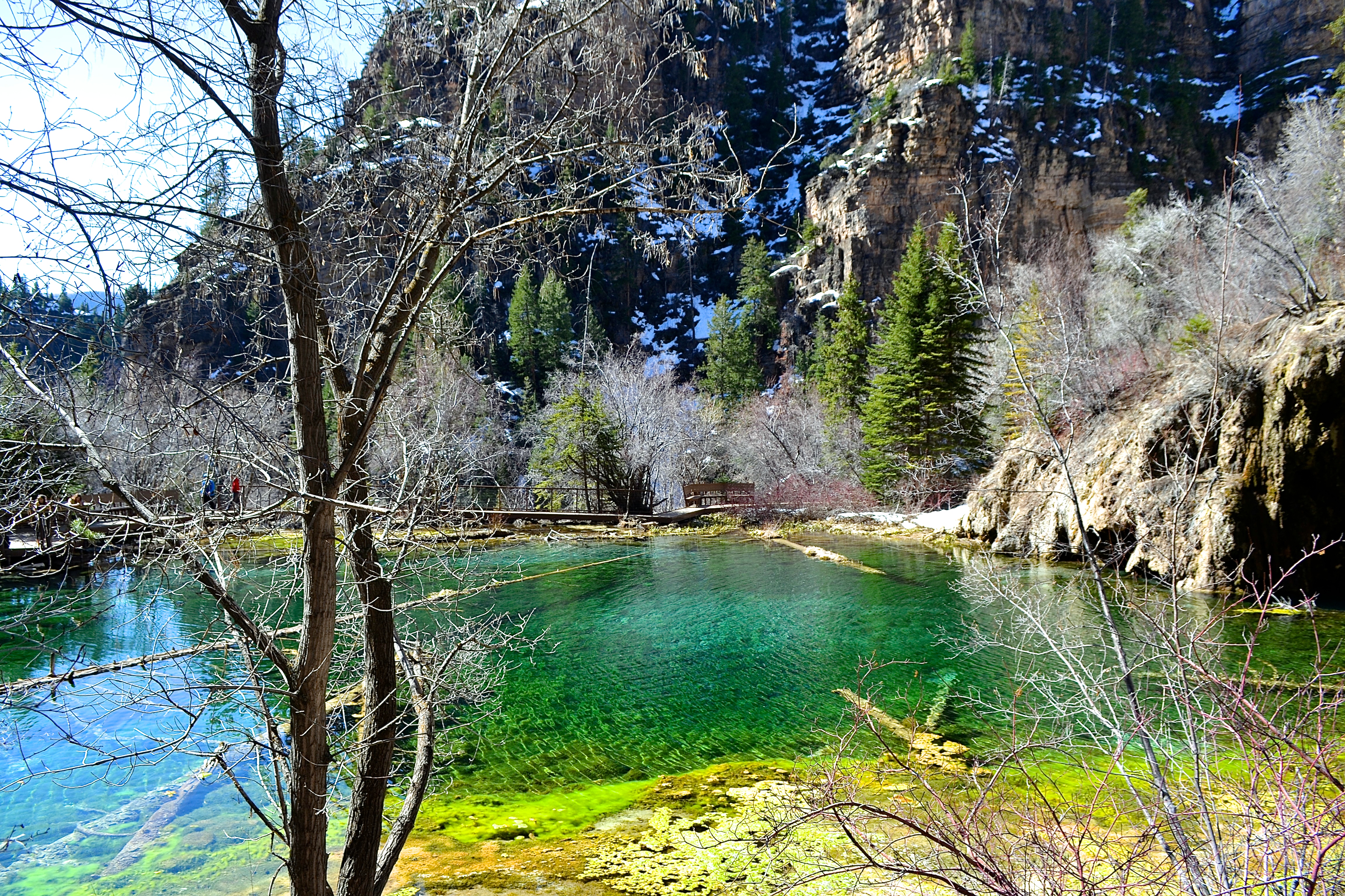 We left Boulder, Colorado early in the morning on a Saturday and stopped in Glenwood Springs (in Colorado) to hike the Hanging Lake trail before cruising straight to Moab. If you haven’t done the Hanging Lake hike before, you must. Right now. It is one of my favorite hikes in Colorado and never fails to shock me with what lies at the end of the hike. After taking the marked exit on the highway, you double-back the opposite direction for about three miles before coming to the parking lot. We arrive there at 10 am and there was plenty of parking spots, but by the time we returned around noon, the lot plus more was full and there was a long line of cars waiting for a spot to open. I highly recommend getting there as early as possible for parking purposes and the fact that there will be fewer people on the trail and at the top. You can always bike from Glenwood to the trailhead (my mom and friends did this years ago). As for the trail itself, its only a little over two miles roundtrip, however, it is all incline on the way up. You need to be in decent shape to tackle this one. That being said, I saw people of all ages and abilities on the trail; some prepared people with hiking boots or running shoes and others in Ugg boots (Please don’t do this. I had no clue how that girl was going to make it to the top). On the day we went, there was still a fair amount of snow and ice on the trail which made it extra challenging and entertaining on the way down as I fell numerous times right on my arse, as did some of my friends. Bruises build character. There is a very clearly marked trail, however, it is rocky and very steep the higher you get. I did this hike several years ago for a dear family friends birthday and it was just as I remembered! When you get to the top of the hike, soak in the beauty of the lake and make sure to climb up to the top of the waterfall where there is another hidden waterfall. Hiking is one of my favorite things to do as it is a physical and mental challenge with the added bonus of so much visual stimulation from the sites.