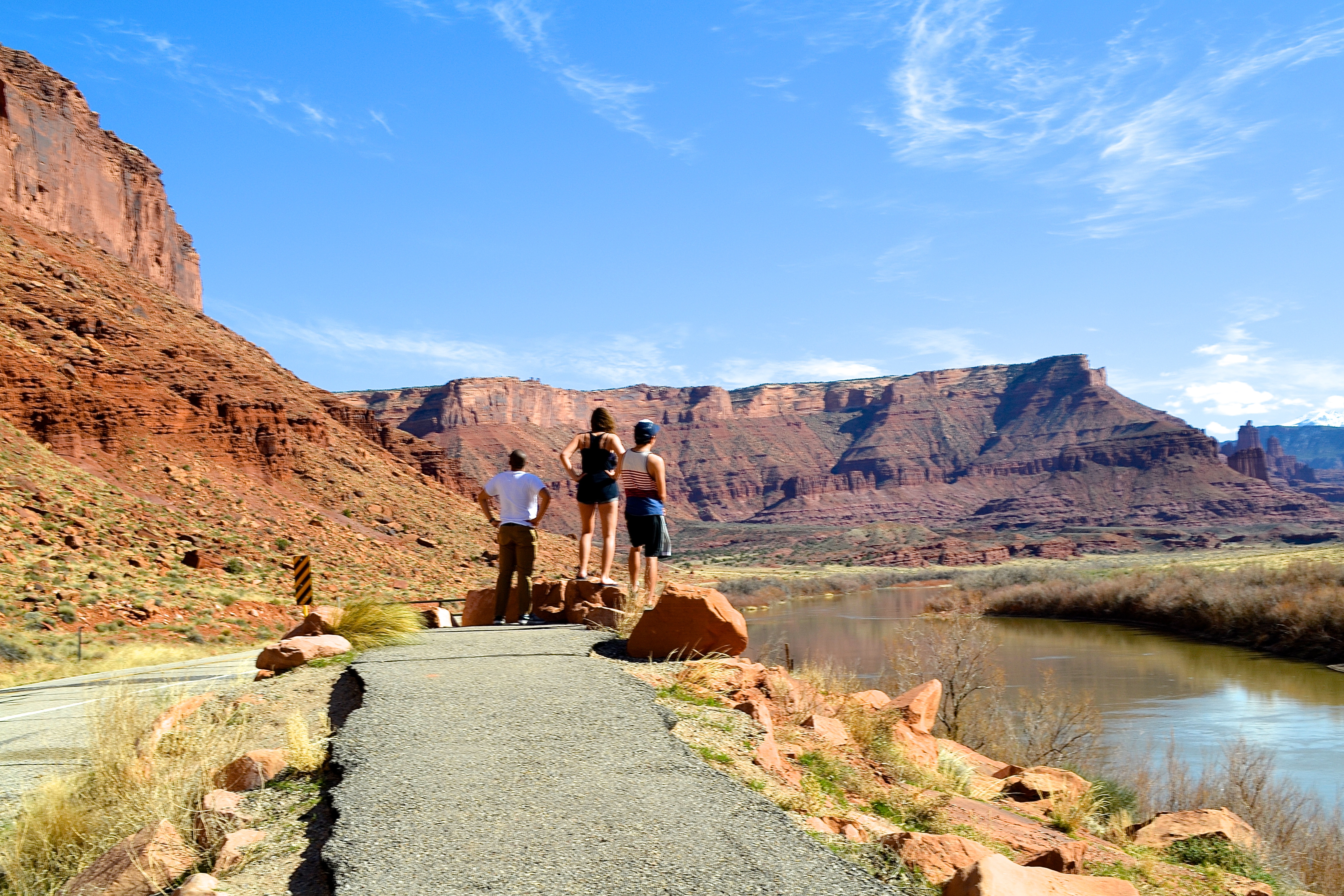 After our pit stop at Hanging Lake, we drove straight into Moab, only stopping to take the obligatory photo at the “Leaving Colorado” sign. Our friends recommended that we take an alternative, more scenic route into Moab which we did and was fabulous! You take the exit off the highway marked as Cisco, or 128 and follow the signs to Moab. It is a lot of winding roads through canyons, but absolutely worth it and highly recommended. I was taken aback by how beautiful it was the whole time. We decided to stay in hotel (well motel…we are poor college students) this trip as we threw it together last-minute and thought it fitted the needs of the group better than camping. However, camping in Arches National Park is an experience not to be missed and the option I will be choosing next time I go back. Our hotel was conveniently located only a mile away from the park and only a ten minute ride into the town of Moab.
