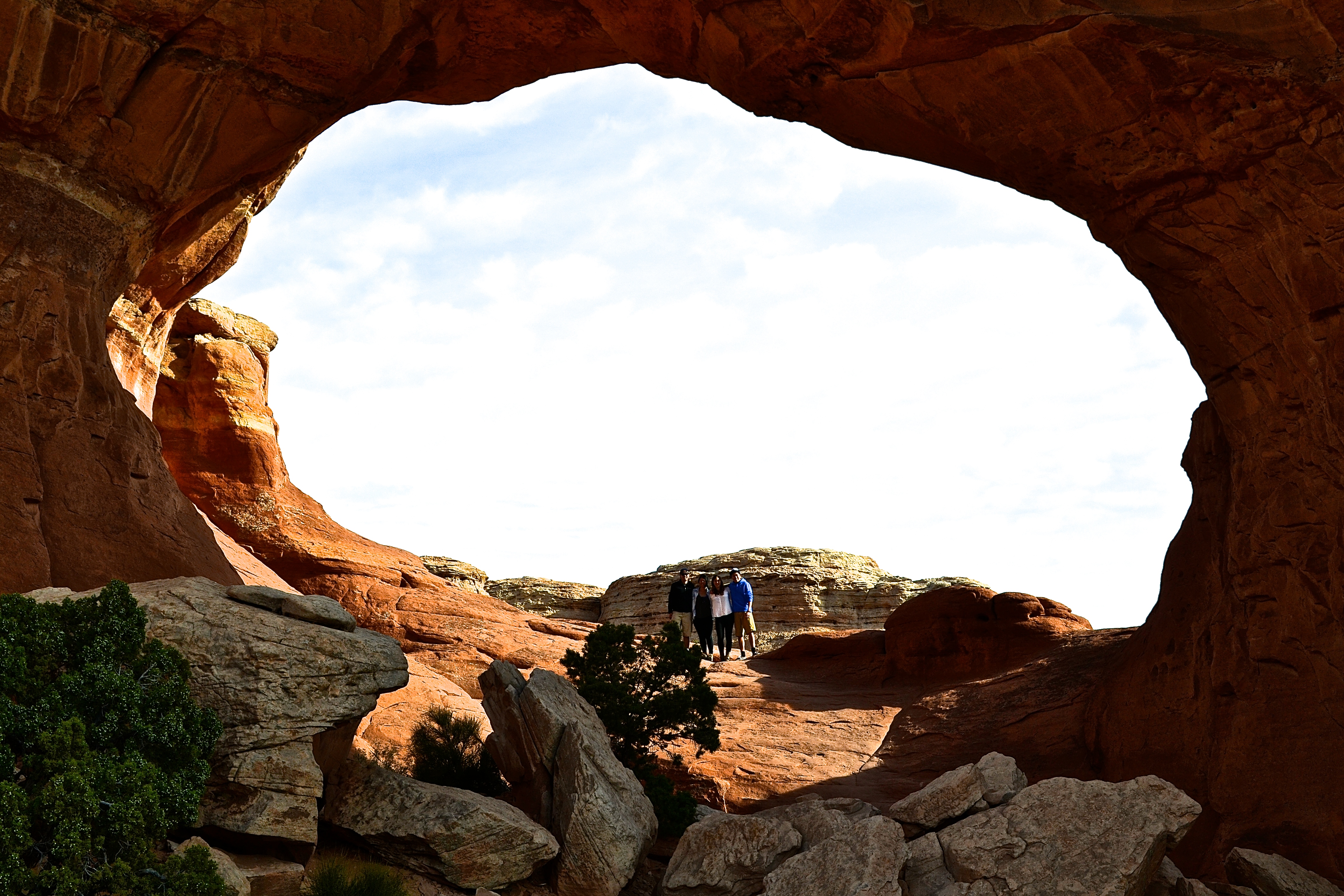 After stopping at several gorgeous view points, we did a short hike to the Windows then continued through the desert to the less visited arches. At our second stop on the hike, we took a morning break and did an abdominal workout with our newly made Dutch friend. What I loved about this trip was the variety of people we interacted with. It was so much fun to briefly get to know people. As a photographer, I naturally offered to take lots of photos for couples and families. Nothing is worse than using a selfie for a family holiday card, it hurts my soul. Plus everyone is so appreciative of the offer which makes my day a little more bright!