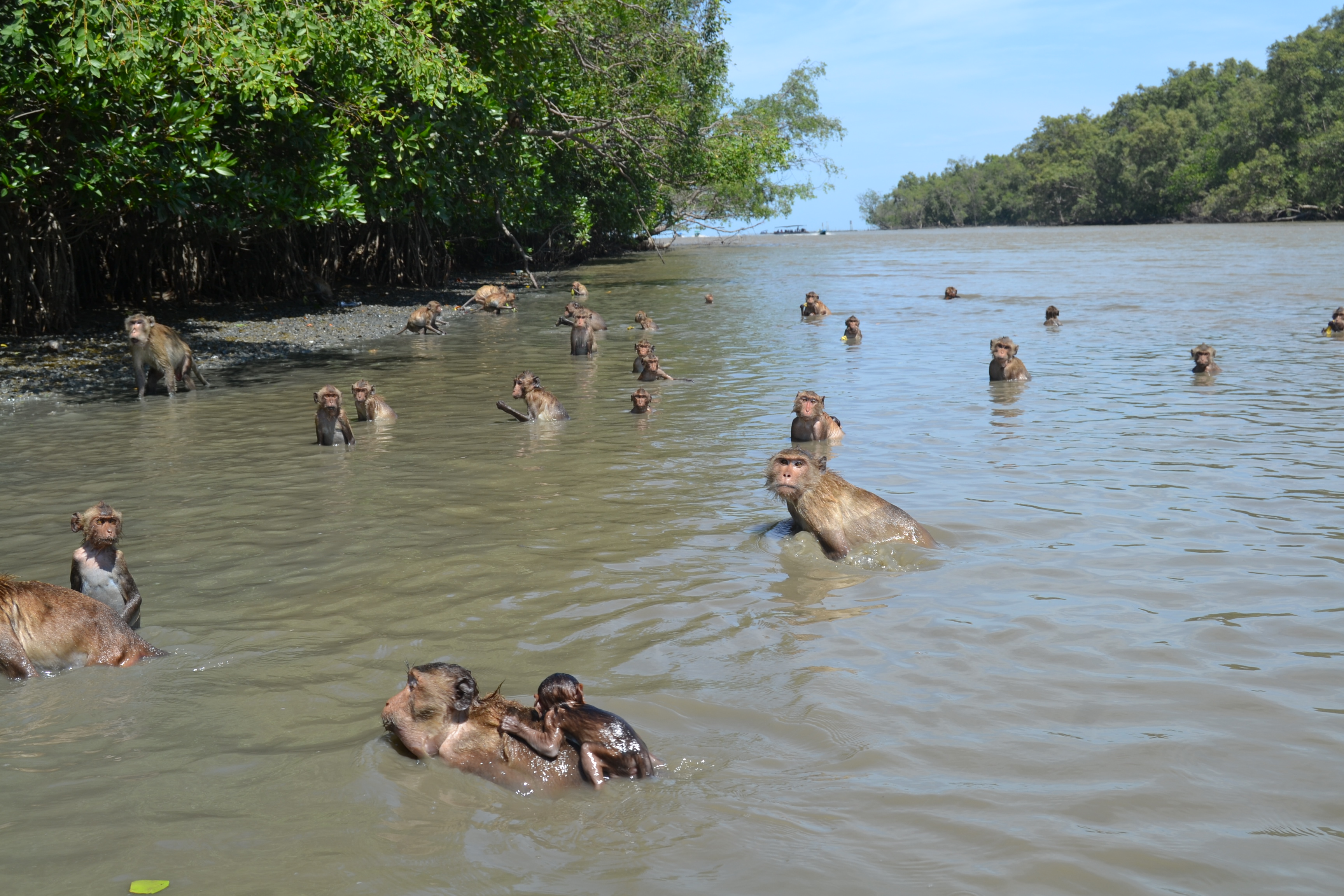 We all piled into boats after lunch to visit the mangroves and feed the monkeys bananas. Let me just say that this experience was terrifying and not something that I ever want to do again. It was like planet of the apes. Monkeys are actually quite good swimmers and know that a boat full of tourists means bananas. They are quite aggressive little buggers. We also had the chance to get knee deep in mud and plant some mangroves.