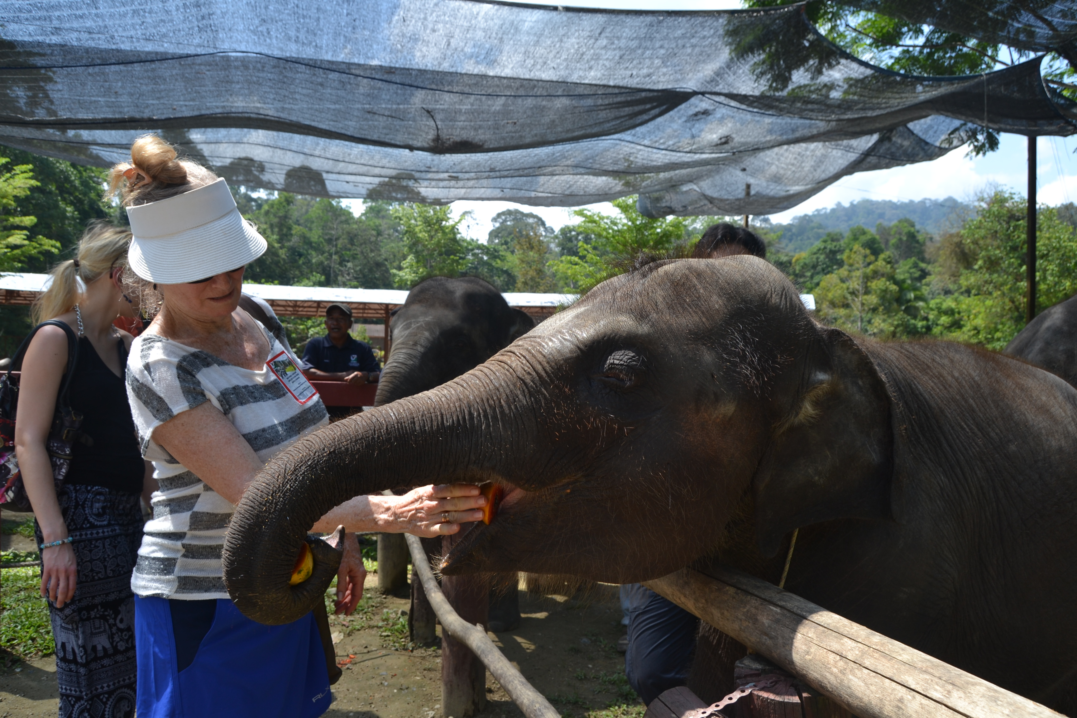 The next day, we went on a private tour to the elephant reserve, Kuala Gandah outside of the city. There is definite controversy over elephant sanctuaries across Southeast Asia, but I found this one to have a good reputation and from what I observed, they really treated the elephants nicely here. We got to feed the adult elephants sugar cane and the baby elephants papaya. We also stopped by another animal farm and did some batik shopping that was part of the private day tour, but neither my mom or me was a great fan of.
