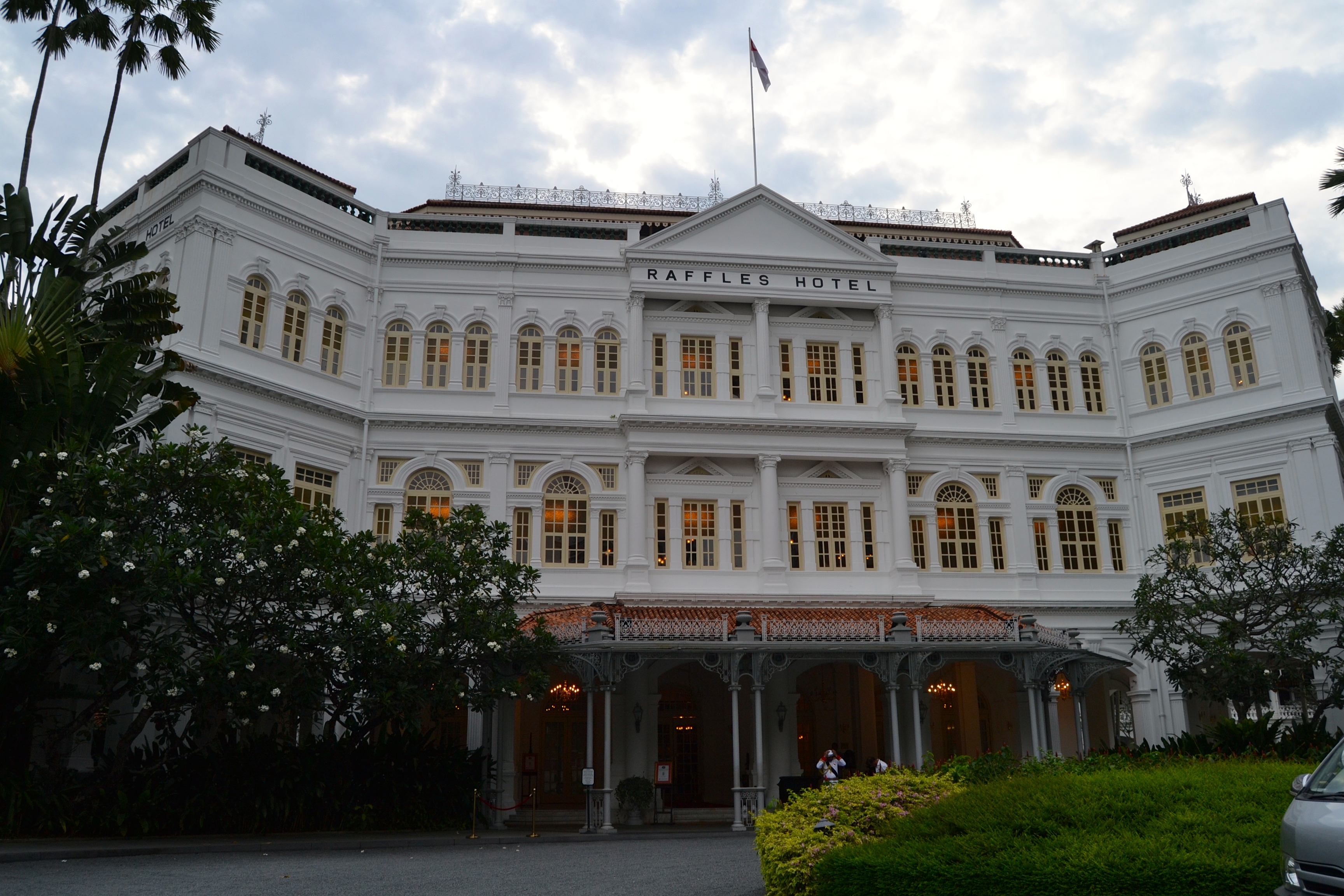 At the Raffles hotel, enjoying our way too expensive drink and peanuts!