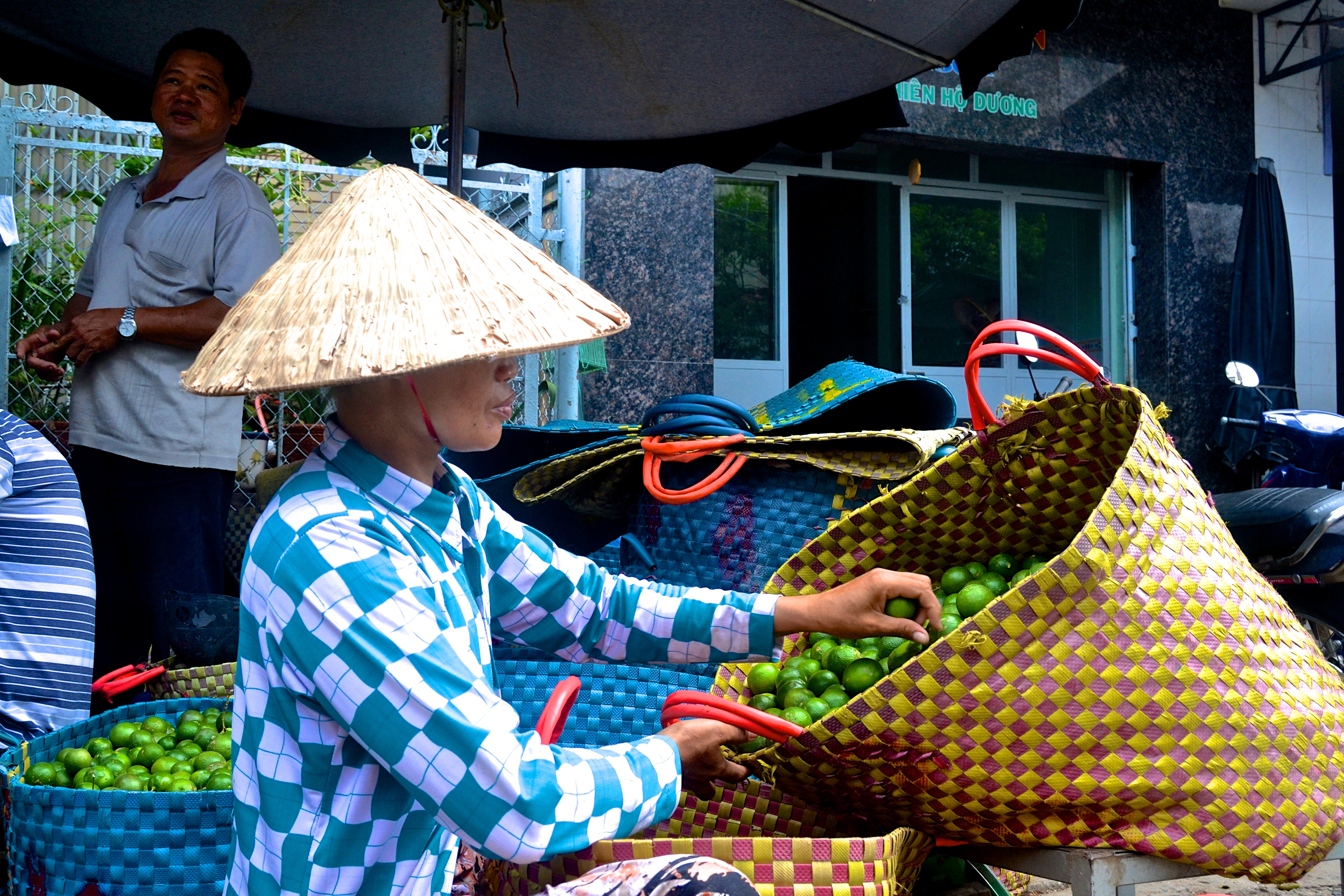 This woman was sorting limes into baskets, there must have been thousands of limes in all the baskets around her.