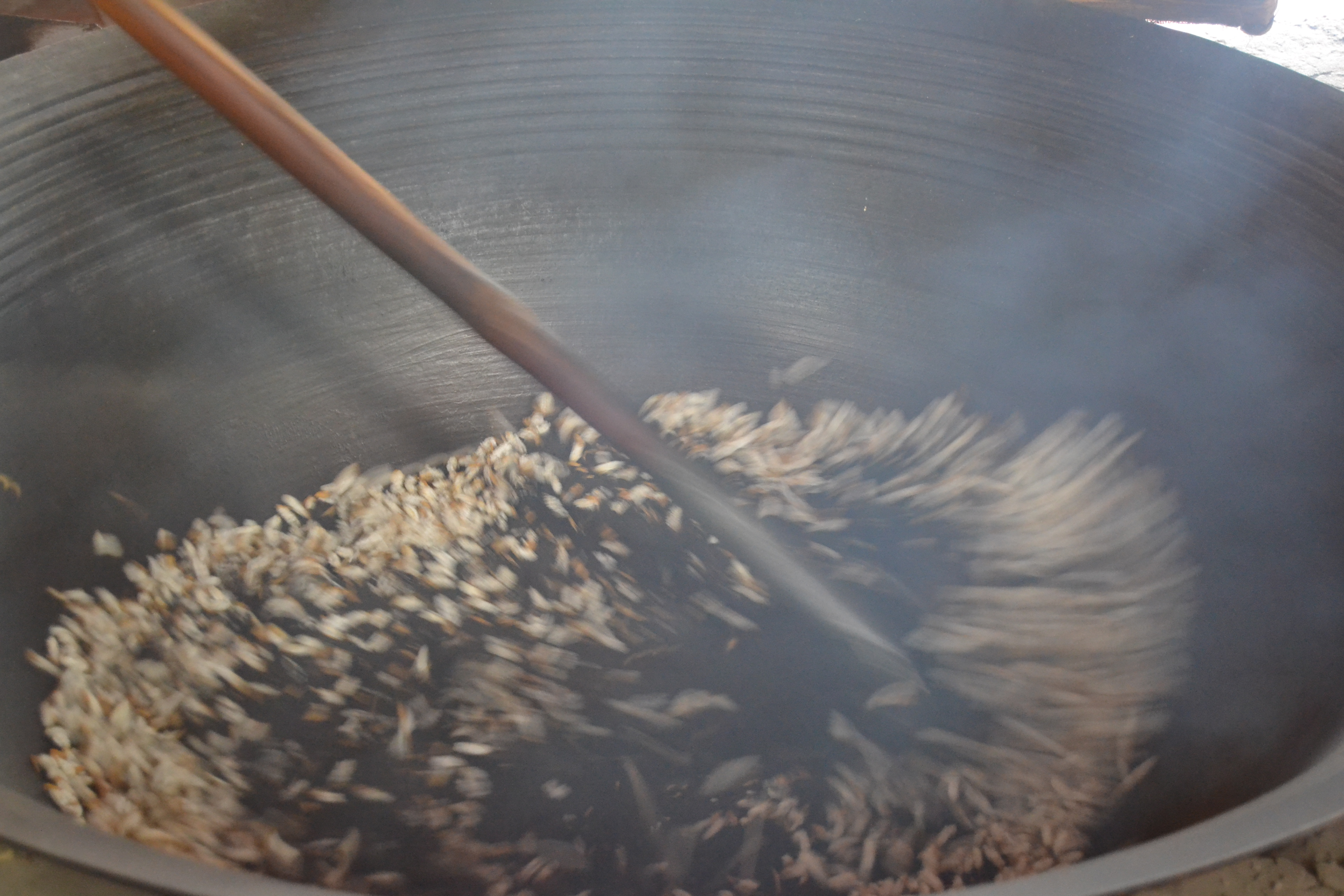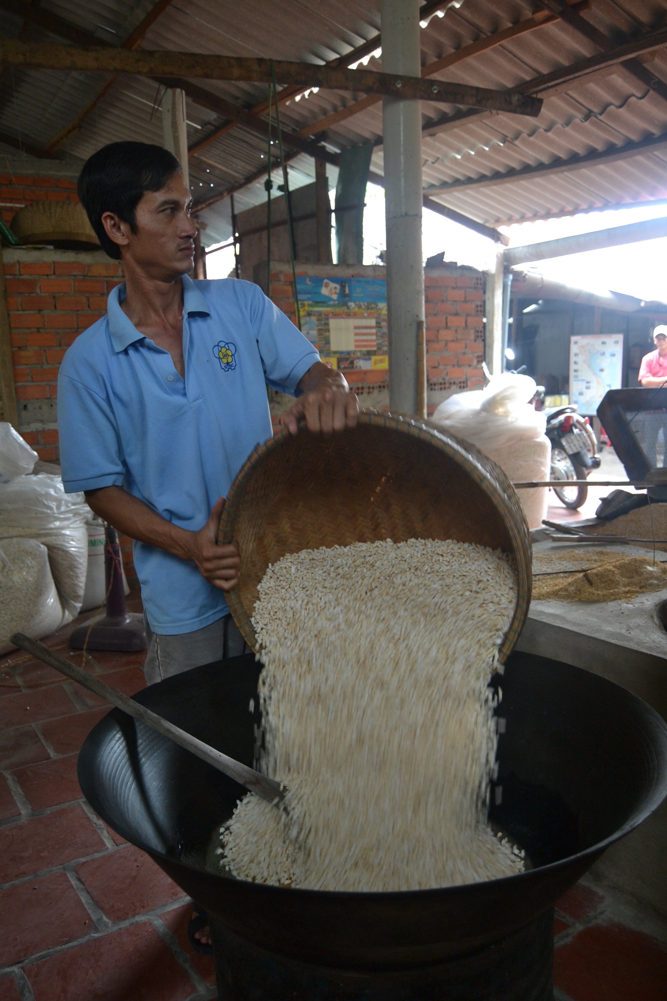 Popping the rice in another hot, large, wok.