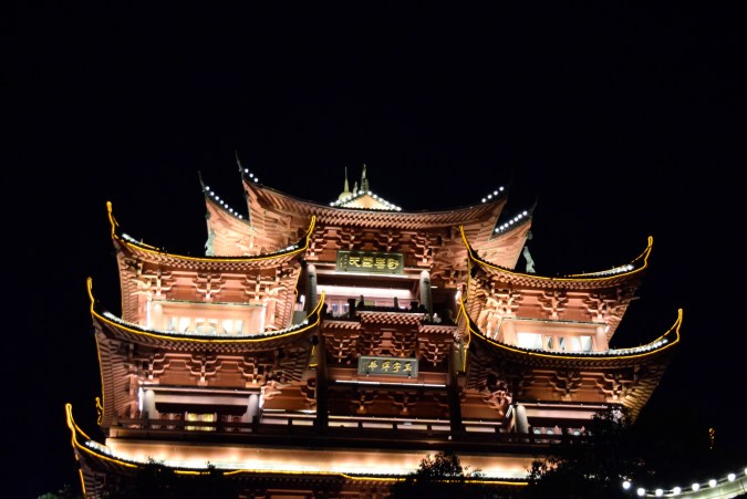 After taking the metro back and taking a breather at our hostel, we walked to the end of Hefang Pedestrian Street and walked up to see the City of God Pavilion which is twinkling at night and has incredible views of the city. There was almost no one else there! It was a little strange being in such solitude given that our day was packed with people all on vacation. We certainly got our steps in walking up the hill and around the area. The view was beautiful! The next morning we had scallion pancakes and fruit for breakfast before I took the train back to Shanghai.