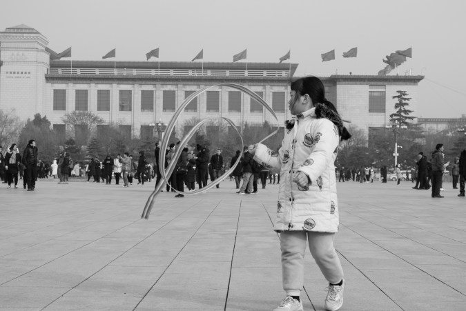 I love taking photos of people just being people and I took this one in the square of a girl dancing with ribbons.