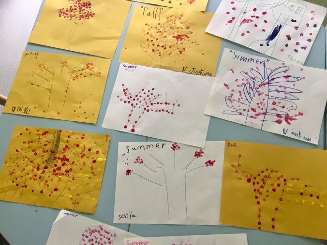 Another fun lesson for the art portion of STEAM, was a pointillism lesson on the seasons. Some grasped it, and others just wanted to smear paint around.