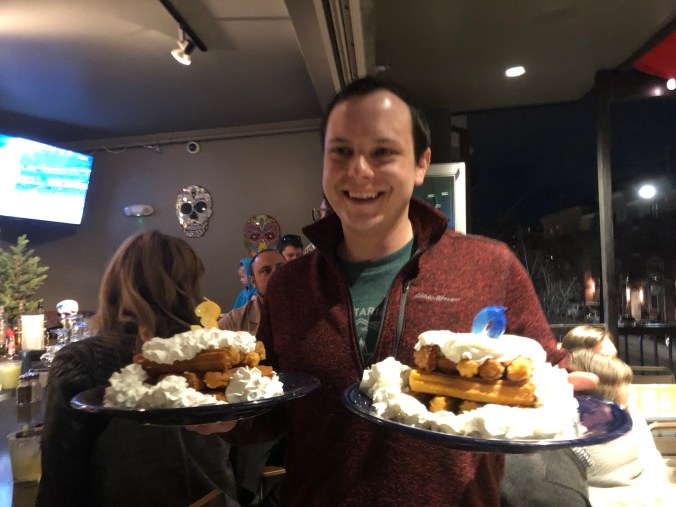 Greg and Kathryn flew in from Milwaukee and we celebrated Greg’s birthday with a fiesta and churro cakes with lots of friends and family.