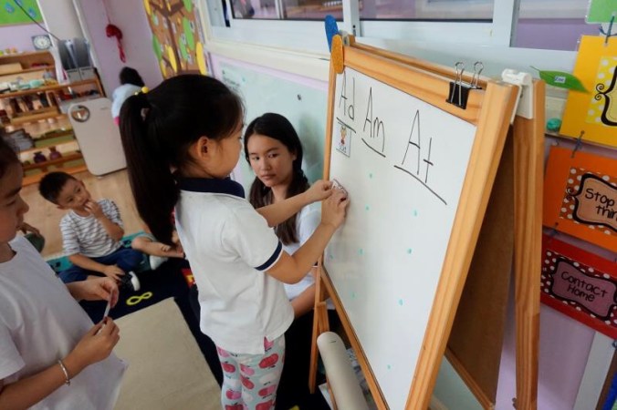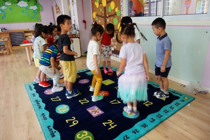 In the afternoon they have chinese class, and here they are playing an even and odd number game.
