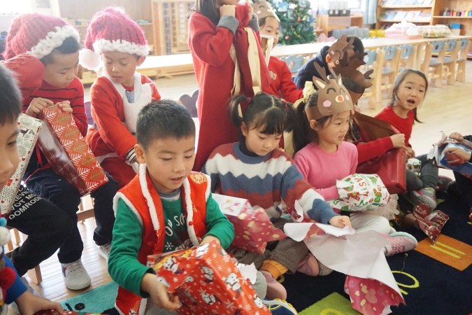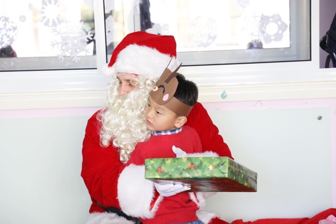 A huge highlight was when Santa came to the Zebra Class! The parents all had wrapped gifts and given them to us for Santa to distribute.