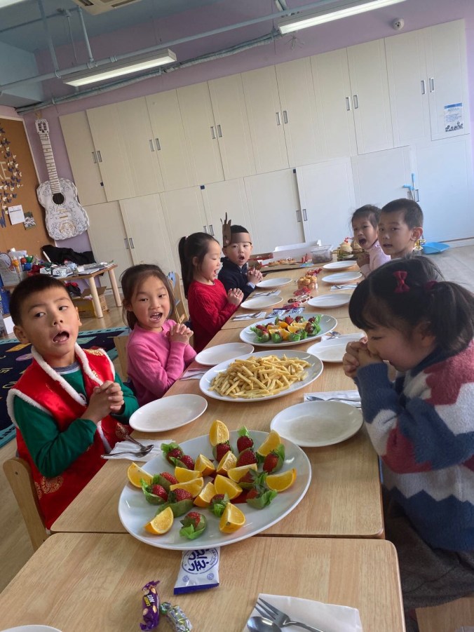 The Christmas season is here and I am on vacation in Philippines as I write! It was a crazy first two weeks of December that involved an unexpected move! I loved my past apartment, but after deliberation with my roommates and landlord we decided not to re-sign. It was an amazing place to call home for a little over a year and I’ll miss that place a lot! However, I am super excited and loving my new place. I have my own apartment in the Former French Concession. It is in a lane house with creaky stairs and only a block away from my yoga studio and gym! Amidst moving I also was working like an energizer bunny on work for the students while I’m on holiday and preparing for our Christmas party. The foreign teachers go on holiday in December and our school hosts Chinese science week! The kids love it. So here’s our super fun holiday party!