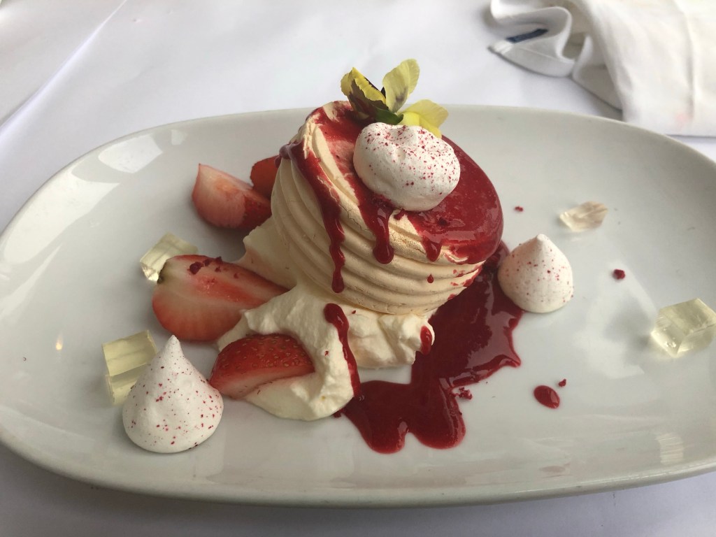 Last, we flew to Wellington for the final leg of our trip. Wellington has an amazing museum called Te Papa. We went twice because it was so good. A huge highlight was the Alice in Wonderland exhibit. Here is the tea party with changing projections on a white table with oversized white tea party fare. It was so cool!Here I am amongst Lewis Carol’s books! A very fun part of Wellington was going to their version of “Hollywood,” called Wewata studios. They are responsible for the special effects and costumes of Avatar, Chronicles of Narnia, Lord of the Rings, and more! Amazing dessert at our farewell dinner our last night! And that’s a wrap on our New Zealand trip!