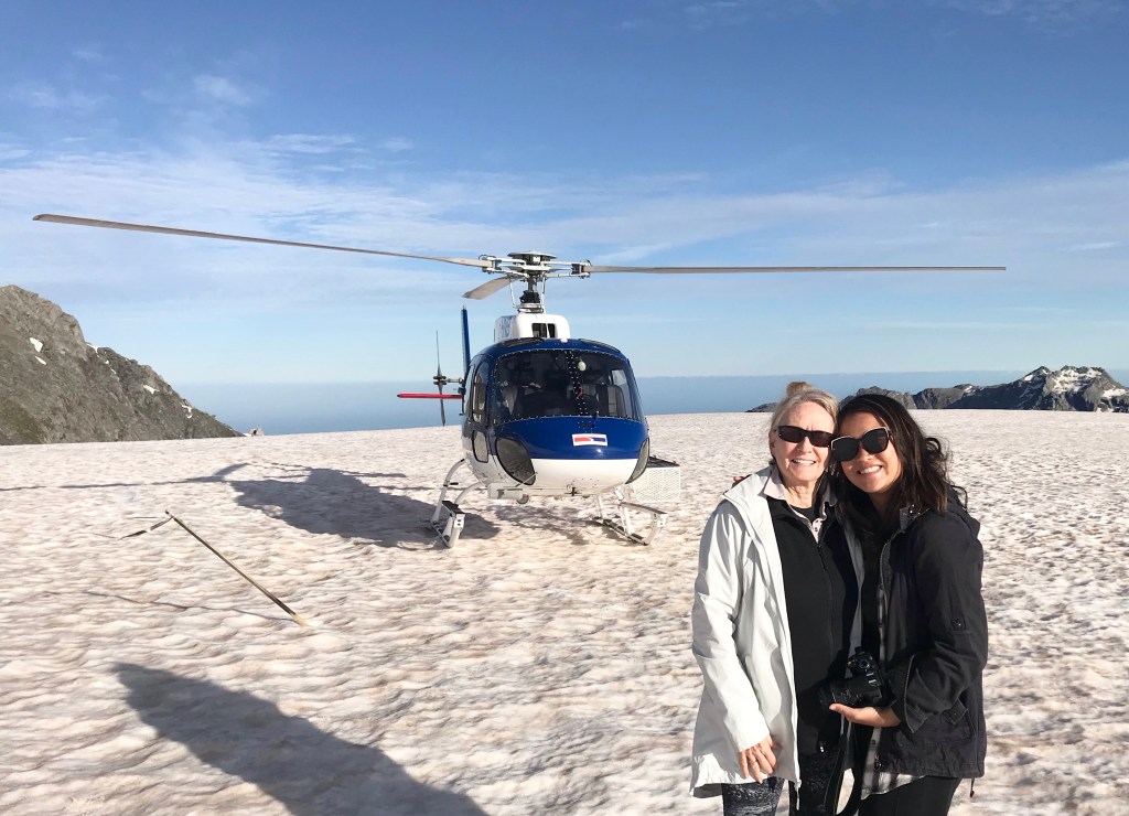 Queenstown was so lovely and after a few days we drove to Fox Glacier. One night we went on a fun hunt in the rain for glow worms and we found them! I have no pictures as it was in the pitch dark, but it was like a scene out of Avatar with all the tiny blue bulbs of light. The highlight of being in the little town for the night happened the next morning…Bright and early the next morning we took a helicopter ride and landed on a glacier! Fox Glacier to be specific. It was a very awe inspiring scene and one of my highlights of the trip. Here we are! What a thrill. Later that day, we went on a walk to visit another glacier! It’s sad to see how much they have receded.