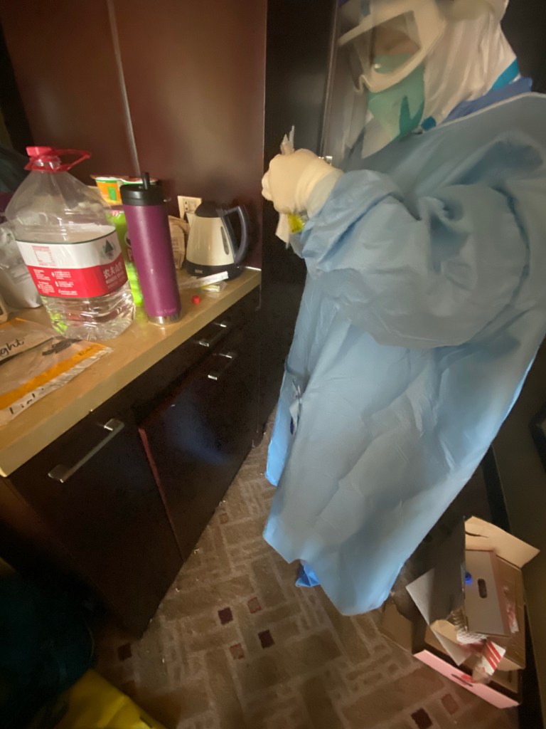 On one of the last days of my stay, they came into my room and swabbed my phone, door handle, and my personal items to test as well. On the 10th day at exactly 7pm (I arrived at the hotel at 7pm my first day) they checked me out of the hotel and I was picked up by my boyfriend and a delicious cheeseburger!